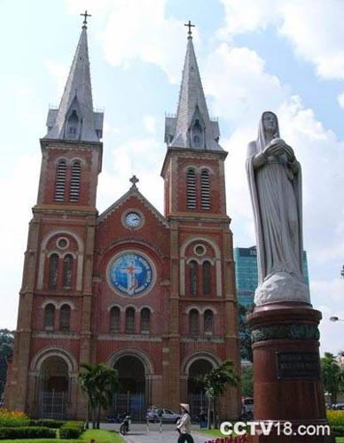胡志明市圣母大教堂,又称红教堂,是胡志明市最著名的地标。它建于1877年,为殖民时期留下的纪念品。