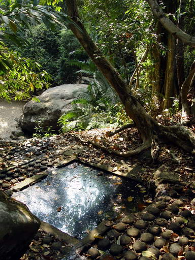在遗迹下面雕凿的那座“澡池”,也不是一般的澡池,应是教徒沐浴圣水的地方,属宗教活动场所。对于高棉人来说,可能它不及荔枝山显赫,但它没有了喧嚣,这里的浮雕作品保存得更加完好。 交通指南:距离暹粒市北40公里,大约需要1小时车程。 |