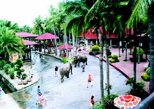 这些庞然大物不但会骑车、踢球,还会给你按摩。你和同伴们甚至还可以和大象拔河,比试一下谁的力气大。 |