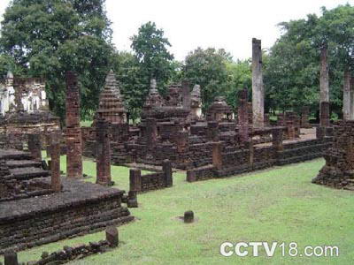 与西昌寺相同属于蒙朵式建筑的卓旁通兰寺(Wat Trapang Thong Lang)立于城的东郊,最重要的遗产是庙的西、南、北各有一幅佛陀浮雕,北、西两面雕有佛陀向父亲、妻子说法的故事,南面叙述佛陀从忉利天下凡,四周有仙拥护,被视为素可泰艺术经典,但已残破不堪,要细看只能在博物馆中欣赏复制品了。