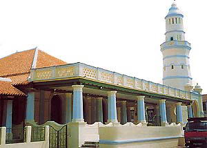 雅哲清真寺(Acheen Street Mosque ,Lebuh Acheen)也叫Masjid Melay,由苏门答腊人Syed Sheriff捐地兴建,1820年建成,尖塔中间有一个细小窗口,传说是1867年暴乱时遗留的炮弹洞。