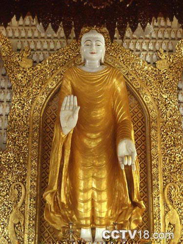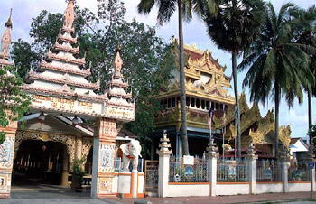 缅甸佛寺(Dharmikarama Burmese Temple,Lorong Burma) 门前有一对大象守护,寺院有一棵菩提树和许愿池,