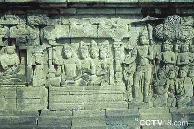 按照佛教解释,塔的下部四方形平台表示所谓“地界”,上部圆形平台表示所谓“天界”。“地界”各层共建有石壁佛龛432个,每座佛龛内有一莲座及结跏跌坐的佛像。“天界”各层建有72各个钟形小塔,每个小塔内供奉一尊成人大小的结跏跌坐的佛像,形状别致,设计巧妙。佛像按东、西、北、中不同方位。分别作出“指地”、“施与”、“禅定”、“无畏”、“转法轮”等各种手姿。佛像的面部神情以及手指、手掌、手臂等各部也是千姿百态,迥然各异,工艺精巧传神。整个建筑物共有大小佛像505尊,是当时世界上最大的佛教建筑之一。 塔内各层都有回廊,回廊两旁的石壁上刻有各式各样的浮雕,其中有很多是佛教故事浮雕,也有当时人民生活习俗、人物、花草、鸟兽、热带果品等雕刻。所有浮雕玲珑剔透,栩栩如生,堪称艺术珍品,所以这里又有“石块上的史诗”之称。 婆罗浮屠因为是建在山丘上,基础不牢,又因年代久远,整个建筑及浮雕都有毁损,1973年开始全面修缮,用了10年时间全部完工。现在这里山环水抱,林秀泉清,古木参天,已被辟为面积达85万平方米的国家游览胜地,开增建了许多游览设施,每年都有很多国内外游人到此旅游观光。 |