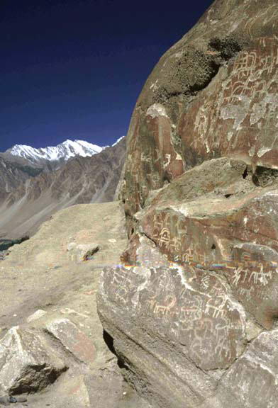 巴基斯坦的山区小镇吉拉斯素以古老岩画而闻名。从首都伊斯兰堡出发,沿着汹涌澎湃的印度河驱车北行约420公里,就可以到达“吉拉斯一期”岩画遗址。在河岸两旁一块块黝黑而光滑的岩石上,当地先民通过简朴的岩画为我们遗留下了早期人类社会广阔的生活风貌。由于被刻画在巨大的岩石上,吉拉斯岩画至今仍然静静地躺在印度河岸边等待人们的观赏。它就象一座露天的博物馆,无时无刻不在向来往的人们讲述着印度河文明悠久的历史。