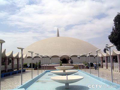 巴图大清真寺是卡拉奇最大的清真寺,位于卡拉奇国防区,中国人称之为“海军教堂”,占地面积35312平方英尺,建筑面积5570平方英尺,1969年11月建成。清真寺的主体建筑—祷告大厅呈半球型,全部由白色大理石建造,通体洁白,在阳光照耀下显得格外圣洁肃穆。大厅可容纳5000人同时祷告,若包括外面的平台、走廊和草坪,最多可容纳30000万人。 |