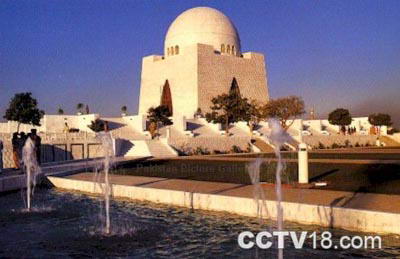 国父墓又称“真纳墓”,是巴基斯坦国父穆罕默德.阿里.真纳(Muhammad Ali Jinnah)的陵墓,位于卡拉奇市中心,建于1970年。墓顶冠以巨大的半圆形曲面,四周是白色的围墙,大理石砌成的台基呈四方形,伊斯兰风格的方形白大理石陵墓主体屹立于棕榈树和各色鲜花之间。整个环境清新幽静,给人以庄严、圣洁之感。 |