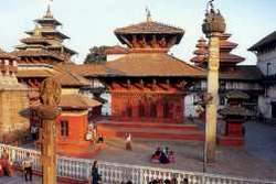 猴皇庙(Hanuman Dhoka)的入口旁有一尊撑着小伞的猴神像,立于1672年,是尼国史诗里的英雄化身,能为战争带来胜利。猴神像脚踏一条蛇,身披红披肩,脸上涂着红油,而猴神像双眼终年被红布包裹,目的是不愿目睹人间罪恶。每天早上,信徒会带着稻米、熏香前来参拜许愿。 行进大门就是最美的拿梭宫院(Nasal Chowk),此为古代尼国皇室加冕处。东面则是纪念King Tribhuvan 的博物馆,此处建筑特色古朴而别具一格。另有罗罕宫院(Lohan Chowk)及四座高塔,四座高塔的名字分别代表尼国国王征服的四处谷地。 |