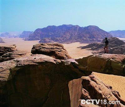 T.E.劳伦斯形容瓦迪拉姆沙漠:浩大,一望无际,似神殿般的广阔。约旦南部的瓦迪拉姆沙漠是他曾经纵横驰骋的地方,也是电影《阿拉伯的劳伦斯》的主要外景地。瓦迪拉姆是约旦最壮观的沙漠景观,又被称作“月亮谷”,因为它像月球表面一样宁静沉寂。这里是典型的纯沙沙漠,风化的巨大岩石如同城堡,为平缓的线条增加了跳跃的变化。