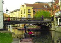 莫麦格达伦学院旁边的大桥,初建于十七世纪中期,起初是木桥,1754年换成石桥。现在的桥建于1823年,由于交通流量大,需要定期加固。有人说,剑桥这个地名就来自这座桥:River Cam(剑河)加 bridge(桥),等于Cambridge(剑桥)。 |