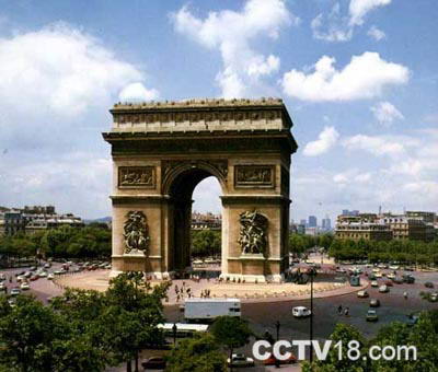 凯旋门地处宽阔的星星戴高乐广场。这里是乡赛丽寨大街的尽头,又是沙佑山丘的最高点。从戴高乐广场向四面八方延伸,有12条大道。宏伟、壮丽的凯旋门就耸立在广场中央的环岛上面。这座拱门是在拿破仑时期1806年由夏尔格兰负责动工建筑的。