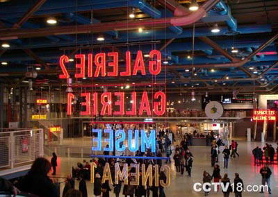 初到这里的人根本不会认为这里是文化艺术中心,它不像我们常见的博物馆,也不像一般的歌剧院,图书馆,倒像是一幢地地道道的化工厂,整个外形就是许多纵横交错的管道和钢架。这正像一座还没有撤出架子的新建建筑物。其实这是意大利建筑师皮阿诺和英国建筑师罗杰斯共同设计的杰作。他们为了一改过去不管起决定性作用的结构和设备,特意把设备和结构来加以突出和颂扬,并且用来作装饰。正是这种突破传统,在技术和艺术上有所创新,更加引起人们强烈的兴趣。有的人认为这是中世纪的一艘破船,还有人认为这是一个现代化的化工厂,但多数人赞扬它为“像神话般的建筑”。