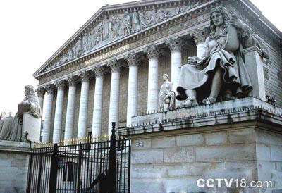 1789年以后,波旁宫差不多一直是法国最高立法机构的所在地,它被看作是法国法律的象征。1830年起用作国民议会,拿破仑当皇帝时把它临塞纳河一面改成柱式门面,以便与河对岸雅典风格的玛德莱娜教堂遥相呼应。波旁宫内部设施也很豪华,只是议会辩论厅相对朴素,像一间扇形阶梯教室,比想象中的小,议员座位也没有扶手。有些议会辩论是允许民众旁听的,只需事先订座,这里毕竟是表达民意的地方。 |