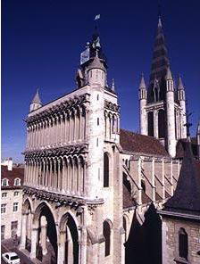 第戎首屈一指的教堂建筑--第戎圣母院(Notre-Dame)位于第戎市中心,继承了罗马艺术时期的建筑风格,当初兴建时就位于第戎主要商业区,受空间所限,这个圣母院是整个勃艮第地区最小的哥特式教堂。将近18公尺高的教堂中殿,以及技巧性的应用飞扶墙设计,让圣母院在有限面积下,仍旧得以展现庄严的宗教气氛,同时维持稳固平衡的建筑本体。