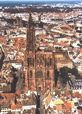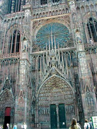 斯特拉斯堡大教堂(Cathedrale)是中世纪(11至15世纪)最重要的历史建筑之一,也是欧洲着名的哥特式教堂,法国知名作家雨果曾以“集巨大与纤细于一身令人惊异的建筑”来形容这座教堂。高142米的尖塔是在1439年加建的,教堂也于同年落成。前墙于1277年动工兴建,它那圆花窗及石花边巧夺天工,三道门廊也饰有精致雕像,斯特拉斯堡大教堂也因此而极负盛名。