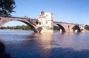 此桥的正式名称是圣贝纳塞桥(Pont St.-Benezet),建于1177—1185年间,13世纪时曾经修复,但在1669年时因罗纳河泛滥而损坏大半,22根桥墩中,只剩下四根。