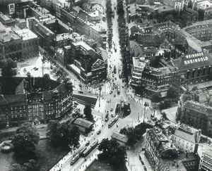 最初的波茨坦广场只有一个十字路口。之后,在这里建起了波茨坦火车站,从而发展成交通最繁华的地区之一,也成了首都生机勃勃的都市生活的代名词。二次大战中,广场遭到严重毁坏。由于它地处美、英、法、苏管辖区的交界处,并有柏林墙横穿广场,使这繁华一时的城市中心,在战后被沦为没有人烟的隔离区。