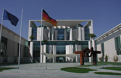 联邦总理府是新建政府区最醒目的建筑之一。这座白色大厦是“联邦纽带”的一部分。“联邦纽带”将新建建筑连在一起,同历史建筑国会大厦遥相呼应。