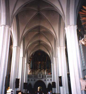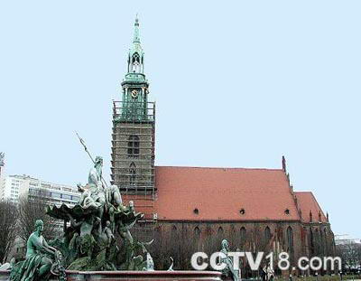 建於13世纪,已有700年以上历史,是柏林市第二个市民教堂,这座哥德式建筑堪称柏林建筑中的杰作。在高耸的塔内有绘於15世纪的镶嵌壁画「死之舞」(Totentanz),极值得一看 ; 另外,完成於18世纪初, 由 A. Schlutcr 雕成的讲坛,亦相当吸引人。