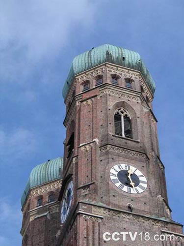 教堂高109米,宽40米,它的特殊的绿色圆顶,在1525年建成后被许多巴伐利亚的塔楼作为模型。夏季时有电梯可直上塔顶,晴天时可以在这里眺望南面的阿尔卑斯山脉群峰和慕尼黑市区。