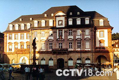 集市广场,建筑美观且协调,如市政厅,圣灵教堂,骑士房的正面烩(Hauptstrasse178)及老宫廷药房(Hauptstrasse190)。骑士房(Ritter)建于1592年,为海德堡市最漂亮且最具艺术价值的市民住宅。而近邻的老宫廷药房(Alte Hofapotheke)则是另一个建筑上的亮点。