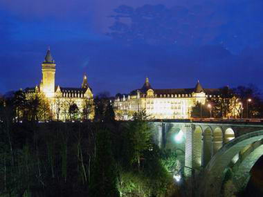 阿道夫大桥是卢森堡的市标之一,建于十九世纪末至二十世纪初,桥高46米、长84米,是一座由石头砌成的高架桥,位于卢森堡车站西北方,步行约10分钟可到.该桥跨越峡谷,连接新、旧两市区,而支撑桥梁的拱门左右对称,非常壮观,是欧洲地区杰出的建筑物之一,从桥上眺望远处的风景十分美丽。 |