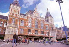 火车站是这座城市的中心,每天有1400多趟的火车抵达或离开这里。从这里出发,人们可以乘“Thalys”号花5个小时抵达巴黎,也可以乘EC城际快车前往科隆。阿姆斯特丹火车总站还是朋友碰头和购物的好地方,在这里可以睡觉,和几个人同抽一支烟,或者就那么漫无目的的随便走走坐坐。 在二号站台Perron,有一家黄金时代风格的餐厅,它在当时是数一流的。但这里的菜肴已经和以前大不相同,而且服务态度也不太好好。站台的另一端是火车站内的第二家餐厅“Snelbuffet”。该餐厅的建筑形式非常具有吸引力,并且环境幽雅,菜色也相当不错。此外,二号站台上还有一家快餐厅“Burger”,一家咖啡厅和交通局的咨询处。 穿过车站大厅,漫步到另一侧,艾湾就呈现在面前;站在车站广场上——这里是电车、环市电车20路及环市游船的起点,可以更好欣赏车站雄伟的正立面。设计者赋予车站正面航海风向标的象征,这是为了纪念这座城市光荣的历史。 |