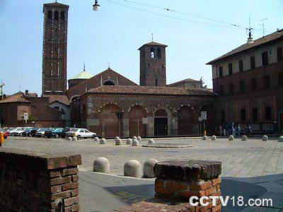 386年传教士安布罗焦为纪念自己而修建的教堂。后来于9—11世纪进行了修建,成为罗马风格的建筑中的杰作,红砖建的拱型门走廊和两个钟楼的后侧是教堂的正面。内部主祭坛上面的屋顶绘有基督和圣安布罗焦的传说的金色图案,下面就是用宝石等装饰的精美的黄金祭坛。祭坛右侧里面的德罗礼拜堂(Sacello di S.Vitale in Cield Oro)用5世纪的马赛克镶嵌画装饰,还绘有圣安布罗焦的肖像。 |