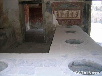 史塔比尼浴场(Terme di Stabiane)是庞贝最古老的浴场遗址,建立于约公元前2世纪。进入浴场,首先映入眼帘的是环绕中庭如运动擦痕能够般的浴池,有男池、女池及游泳池。男池和女池各有更衣室、桑拿室,热气通过地板环绕整个浴场,室内保持恒温,足见古代罗马人对洗浴的热爱。 |