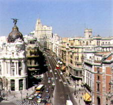 格兰维亚大道是马德里的主要交通干道,于1952年建设完成。该大道上多为一些搀有欧洲及美洲风格的西班牙传统建筑,它们都有着华丽的外观、雄伟的柱廊及临街的阳台。这条街上较为著名的建筑物有都会大楼、雪茄博物馆、加里西亚斗牛士小礼拜堂等。特别值得一提的是西班牙国家电信总局,它是由美国设计师韦克司在1929年完成的,是马德里的第一座摩天大楼。 |