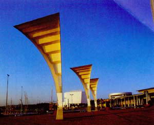 巴塞罗那码头是停靠游船和主要去往意大利的渡轮的停泊码头,它可以同时停靠9艘邮轮,在世界各大港口城市中名列前茅。在码头的中央耸立着加乌马一世缆车塔(Torre de Jaume I),这座高塔是连接巴塞罗那塔和位于蒙杰伊克高地的缆车站的中转站。在塔上一边可以看到浩瀚的地中海、码头上停泊的邮轮和集装箱,一边也可以看到巴塞罗那城市的主要街道。特别是夕阳西下的时候,从这里眺望周围风景真是美不胜收。在码头的最尖端处有一座十分醒目的白色船形建筑,它就是由设计巴黎卢浮宫前玻璃金字塔的著名美籍华裔设计师贝聿明设计的巴塞罗那世界贸易中心。它由4个8层的弧形建筑拼合而成,中间的空地有一座小喷泉,从侧面看就像是一艘巨轮停泊在水面上。近两年来,这里已经成为在巴塞罗那进行国际商务活动的基地和各大国际贸易公司的办公汇聚地。 码头宽阔整洁,大道两旁到处是棕榈树、草坪绿地、现代风格的路灯和雕塑装饰。这里聚集了港口区最吸引游客和当地人的三大建筑集商业、娱乐、餐饮于一身的MaremagrlLim大楼、IMAX电影馆(采用Imax,Omnimax和三维制式放映全景电影、立体电影)和欧洲最大的水族馆L Aquarium。在西班牙码头上还有皇家海上俱乐部和航海俱乐部,可以看到上百艘游艇停泊在港中的壮观景象。最具标志性的当属一座名为“海上兰布拉”的新建木制吊桥,桥身呈波浪起伏的“S”状,桥上立着一段段顶部带曲线的栏杆,远观好像一条条鱼穿行于海中,设计十分巧妙。取名为海上的兰布拉大街,自然显示出它在海港区的重要作用。“海上兰布拉”连接着老港的木材码头(Moll de Ia Fusta)和西班牙码头(Moll d Espanya)。木材码头是老港最先被改造的区域之一,目前己成为一条铺设着方石,并栽种着棕榈树的美丽大道,在道路的旁边建有一排排现代风格的餐厅和酒吧。 |