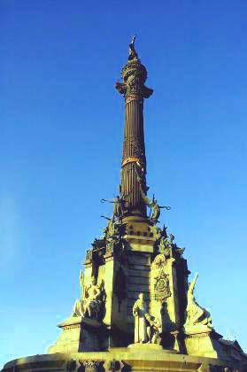 为纪念哥伦布发现美洲400周年,巴塞罗那当局决定为哥伦布树立一个纪念碑。1888年万国博览会期间,哥伦布了望塔正式落成。这座巍峨的圆柱形纪念碑全部用赭红色大理石建成,塔身高达60米,上有“光荣属于哥伦布”、“向哥伦布致敬”两行大字。 环绕柱体中部雕有五个凌空飞舞的女神,底座四周雕有八只巨大的黑狮,还有记载哥伦布航海事迹的碑文和当时资助他远征的国王费迪南德和王后的雕塑。圆柱顶端的哥伦布全身立像由蒙杰伊克城堡前的大炮熔化后铸铁制成,是世界上最大的哥伦布塑像,呈现出哥伦布凝神远望、右臂指向前方海洋的姿态。了望塔位置的选择也很有意义,这里是兰布拉大街的终点,也是游览港口区的起点,象征着市中心和海港的相连。1992年,巴塞罗那概念派艺术家安东尼出了一个疯狂的点子,给它在大洋彼岸找了一个伴儿——美国的自由女神像。不惧高的游客可以乘内部电梯登上顶端的位于塑像脚下的了望台,观赏港区、蒙杰伊克山和整个城市的全貌。 |
