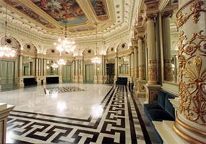 剧院建于1845年到1847年,与1994年被一场大火将整个内部烧的片甲不留,所以它的再建花了许多年。在2000年初的重新开业引起了震动。在2001年这里发生了一起打架斗殴时间,因为这里的会员俱乐部只能是男士成员;但是拉·蒙塞拉·卡巴雷(La Montserrat Caballe),西班牙最著名的女古典演唱家递交了她入会的请求却遭到拒绝;凭着加泰罗尼亚人的固执和倔强,经过努力,她现在应该是可以在剧院里演出了。