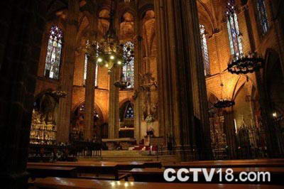 进入大教堂内部,中央部分摆放着一个祭坛,在祭坛的地下长眠着巴塞罗那的守护圣女桑塔——埃乌拉里亚。堂内两侧的礼拜堂相对而立,据说在那里蜡烛的火焰永远不会熄灭。从中庭的道路可以自由出入,后面还有一处大教堂附属的美术馆。大教堂前面的广场上,每到周六的19:00左右和周日的正午时分就会有人跳起民族舞蹈萨尔达纳舞(周六只限于夏时制时间)。