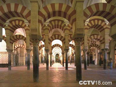 建于公元785年,科尔多瓦的清真寺以世界上最宏伟的清真寺为目标,接下来的两个世纪更是不断扩建,使得它成为当时回教世界最大的清真寺。由14世纪的穆迪哈尔(Mudéjar)式大门─宽恕门(La Puerta del Perdón)可看见种着橘树、棕榈树的橘园(Patio de los Naranjos)。清真寺的尽头是个回教式殿堂,中间是壁龛(Mihrab)朝向麦加(Mecca),供人膜拜。 前身为西哥德所使用的教堂,后经拉曼一世收购,改建为清真寺。在16世纪时,查理五世又对教堂大肆改造。再加上之前几位在位者的扩建整修,这座清真寺在经过几次改建后,使得风格变得有点混杂了。