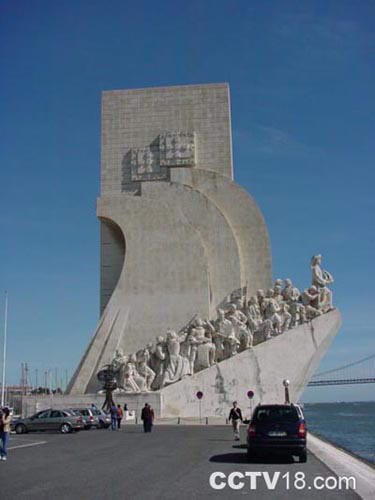 纪念碑位于巴林塔不远处,屹立于海旁的广场上,气势不凡,已成为葡萄牙的象征。此碑建于1960年,为纪念航海王子亨利逝世500周年而建,外形如同一艘展开巨帆的船只,碑上刻有亨利及其它80位水手的雕像,船头站立者即为亨利,其后为其助手加玛,两旁是一些随同出发的航海家,以及葡国历史上有名的将军、传教士和科学家,颇具气势,以纪念葡萄牙300年来开拓海洋的光辉历史。游人可登上碑顶,眺望附近的景色和海港风貌,极其明媚动人。碑前的地上刻有一幅世界地图,上面刻有发现新大陆的日期。 |