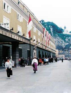 艺术节剧院坐落于僧侣山山脚,人们把这里称作艺术节戏剧区。小艺术节剧院建于1924到1925年。 而大艺术节剧院则由克来蒙·霍尔茨麦斯特于1956-1960年建成。大剧院由奥地利建筑设计师克雷门斯· 霍尔茨麦斯特设计建造的,1960年在卡拉扬主持开幕。