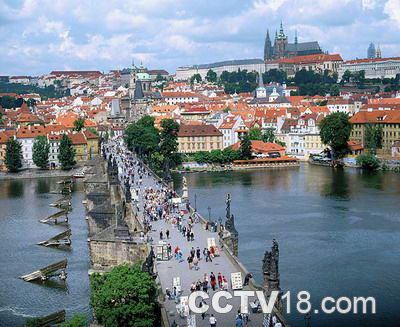 从旧城广场沿着查理街(Karlova Ulice)走向查理士桥,这段狭窄蜿蜒的街道却聚集了许多旧城的精华,也是当时加冕御道的一部份,许多以往文艺复兴和哥德式建筑的房舍,目前都改为商店,在逛街购物之余,不要忘了注意一下墙上的浮雕、壁饰,可能会有意外的收获。譬如22号上方的新艺术雕塑—被玫瑰围绕的女神,18号金蛇之屋的咖啡店,以及3号金井之屋雄伟的巴洛克墙壁雕刻。 |