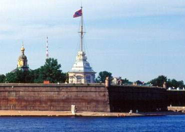要塞中有圣彼得堡大教堂、钟楼、圣彼得门、彼得大帝的船屋、造币厂、兵工厂、克龙维尔克炮楼、十二月革命党人纪念碑等建筑物。其中,最著名的是圣彼得堡大教堂,这座大教堂建于1703年,原先是木质的,1712年在原处改建为石砌的大教堂,历时21年才建成。教堂上屹立着一座高大的尖顶钟楼,到本世纪中期,这座122米高的尖顶钟楼,还是全城最高的建筑物。要塞中还有六座棱堡及其他军事设施,棱堡中有3000门大炮。从18世纪起,每日中午12时,纳富什金棱堡的大炮就射出一发空爆弹,向全城居民报时,这一习俗流传至今。 |