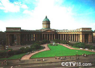建筑师在设计这座教堂时遇到不少困难。根据东正教教规要求圣堂必须面向东方,因而必然造成教堂往往是侧面对着主要大街。建筑师们采取了把侧面设计得十分壮观的方法解决了这一难题。因为人们一看气度非凡的柱廊,就忘记了这不是教堂的正面。这种处理方法极其大胆,富有特色。它的外貌具有典型的当时帝国风格的特征。大教堂正门两侧有造型严谨的古典式柱廊向外延伸,宏伟壮观,形成一个半圆形广场教。柱廊的后面露出高达70米的教堂圆顶。教堂前的广场上有一座花岗岩喷泉,还有两位俄国统帅库图佐夫和巴克莱·德·托利的纪念像。大教堂正面的浮雕、北面柱廊上的雕刻、殿内装饰和油画均出自名家之手。喀山大教堂的内部不大像一般的教堂,而更像一座宫殿。它明亮、轻快,以柱列分隔的长形主堂高大宽敞,中央穹顶辉煌华丽,仰视可见一幅圣母图,周边饰以圣经人物雕刻和水彩壁画。 |