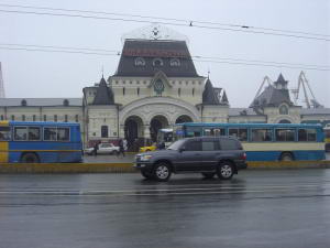 该站是海参崴这片土地上最具俄罗斯建筑风格的一座建筑,让人能联想起17世纪俄罗斯建筑艺术的代表作品。它与俄罗斯远东大铁路建设同步,历史上该火车站建筑经过了几次改造,现在的火车站大楼是按照弗科诺瓦洛夫的方案于1912年建成。它外观精美古朴,充满贵族气息。主入口采用三联拱门形式,屋内为冰刀状屋顶,有许多小帐篷顶点缀其中,给人以复杂多变的视觉美感.