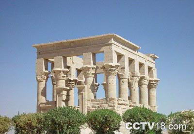 在埃及阿斯旺的纳赛尔湖上,有一座著名的古埃及寺庙——菲莱神庙。中文的译音与形式巧合:在蓝天碧水之间,一座古内寺庙孤立岛上,正是“飞来”二字之意。从空中乘直升飞机在尼罗河谷飞翔,菲莱神庙的巨型石柱醒目逼人。 菲莱神庙是现在保存最好的三座古埃及托勒密王朝庙宇之一,是为古埃及神话中司掌生育和繁衍的女神艾希斯而建。现在的菲莱神庙是在建设阿斯旺大坝时,从菲莱岛移至北侧500米的艾格里卡岛上重新建的。埃及人对艾希斯的崇拜由来已久,古埃及的传统要要求每一个埃及人在一生中都至少要来一次圣地向神灵祷告。 菲莱神庙的入口是两座梯形的塔门,相夹形成一个门庭,柱廊与主殿大门又构成一个不小的广场,砖墙上有不对称的浅浮雕,讲述宗教与神话故事。穿过有两尊狮子坐像的主门入口,即进入中庭,眼前又是两座梯形浮雕塔门,浮雕不仅有大型人像,还有密密麻麻的古埃及象形文字。大殿的柱式风格统一,为开花纸莎草式,在柱头位置雕有面朝四方的女神方柱头。细看,每个柱子有的图案各不相同,可谓根根柱子独具匠心。