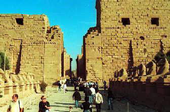 卡纳克内有数座神庙,其中的阿蒙神庙是埃及规模最大的古迹。阿蒙神原本只是底比斯这个小部落的地方神明。中王国时代之后,随着底比斯的壮大,它与太阳神结合在一起,成为国家的最高神祗。古王国时代,法老自身就是神。而到了新王国时代,法老是受到阿蒙神的庇护才存在的。因此,历代法老都在阿蒙神的信仰地建造神庙和方尖碑、神像等,供奉阿蒙神。最终形成了卡纳克极大的建筑群。 其中,令人叹为观止的是宏大的大列柱室。从入口。经过斯芬克斯神道,穿过第1、第2塔门,就到了大列柱室。高23米和高15米的两种石柱共134根,构成了如此气势恢弘的列柱室。第2塔门的巨像是拉美西斯二世的像。 进入大列柱室的正门之后,经过图特摩斯一世和哈特谢普苏特女士的方尖碑,紧接着就是图特摩斯三世的祭殿。大列柱室右侧是第7塔门,通往圣池。 进入大列柱室后,也许会有个保安前来询问游客,是否想登上更高处眺望。地点就是第7塔门更深处的第8塔门。这里的视野没有什么希奇之处,而且还要给小费,所以没有必要登高望远,可以明白地拒绝对方。 其中穆特神庙到处都有火烧过的痕迹,看起来像个废墟,不过内部的浮雕很值得一看。细处的刻画十分精细,比想象中保存得更好。 卡纳克神庙每夜都有音与光的表演。表演时,伴随着灯光和音乐,逐渐从入口经过第1塔门、大列柱室,前往圣池。音乐是穿透力很强的立体声,十分具有感染力。最后,从圣池旁的观众席上仰望满天星斗,也十分美妙。这一定会成为您难忘的旅行记忆的。 |