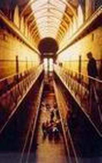 旧墨尔本监狱在维多利亚街和罗素街的街角附近,是已经泛黑的蓝石建筑,现在只留下其中的一部分。内部中央有通路,两侧是三层的单人牢房,即使在夏季仍十分阴冷。
