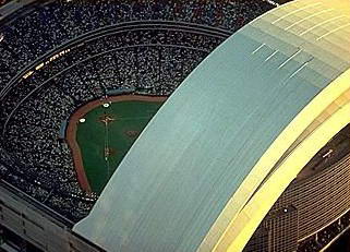 天虹体育馆(Sky Dome)紧靠CN塔的是世界第一个顶蓬全自动开关巨蛋体的全天候室内体育馆,不仅是多伦多著名棒球队Blue Jays的起源地,也是目前各大型运动的场地,亦是世界上第一个拥有可全面伸缩的体育场。其顶盖由四个盖板组成,其中三个可以收缩或伸张,要打开或关闭顶盖只需20分钟,其移动的速度为每分钟21公尺,位于CN塔的旁边。