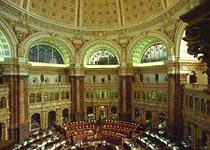 美国国会图书馆是全世界藏书量最大的图书馆之一,位于华盛顿国会大厦正东处,由杰斐逊大厦、亚当斯大厦和麦迪逊纪念大厦构成。 它最早建立于1800年,收藏有2000万册图书以及各种图表、手稿、地图、期刊、唱片、电影胶片等等,总量达到8000万件。馆内的书架连接起来长达547公里。这里有华盛顿的日记手稿、《独立宣言》的原稿、首次印刷成书的《圣经》,甚至还有清政府赠送的书籍。这是一座巨大的知识宝库,游人来到这里,即便是来不及坐下来阅读书籍,至少可以参观一下它宏大的规模和极具水准的布置。 |