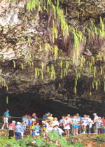 蕨类植物洞是可爱岛上最吸引游客的一个地方。蕨类植物就象嫩绿色的钟乳石一样从40英尺高的洞顶垂悬而下,遮蔽着岩石,宛如仙境一般。到达山洞的唯一途径是从怀卢阿河乘船而上,怀卢阿河是夏威夷唯一可以行船的河流,沿途就可以看到无数迷人的景致。夏威夷人的吟唱、胡科劳舞的表演是参观蕨类植物洞的序曲。 |