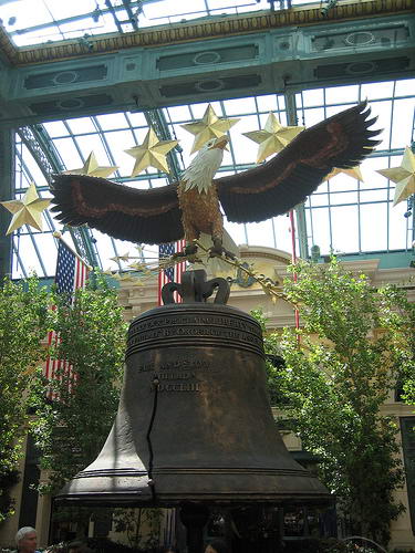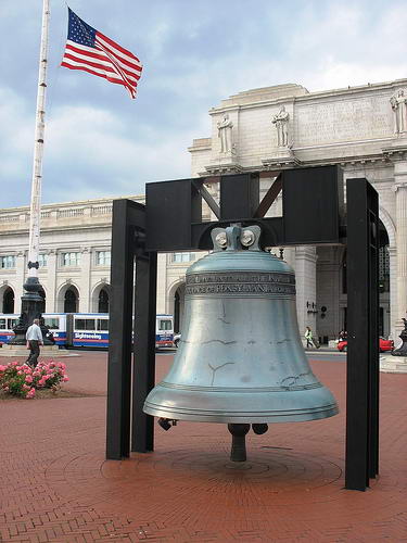 费城的象征-自由钟 自由钟是费城的象征,更是美国自由精神的象征,是美国人的骄傲。它参与了美国早期历史上最重要的事件:为第一次宣读独立宣言而鸣响,为合众国宪法通过而鸣响,为送富兰克林赴英陈请,召集市民讨论英国颁布的《糖税法》和《印花税法案》而鸣响,为华盛顿的逝世而鸣响。它的似乎并不怎样响亮的声音宣告了美国的自由和独立。 美国革命之后,它的历史从来未曾中断。它进入了诗歌;它为争取自由的妇女运动复制;它作为国宝在美国巡回展览,从北至南,从东海岸到西海岸,所到之处,万人空巷,争睹圣物;二战期间,它的声音被电台广为播送,成为美国人信念的旗帜;黑人争取投票权,围绕它静坐;黑人民权运动领袖马丁·路德·金在《我有一个梦想》的激昂演讲中,那一连串气势磅礴的排比句反复高喊的就是让自由钟钟音响起。 两百多年来,自由钟就是这样,以自由为主题,为不同历史时期的不同历史诉求代言,不断地为美国历史所诠释,其象征的意义也随之不断地被丰富和提升,终至成为美国爱国主义最好的教材之一。 |
