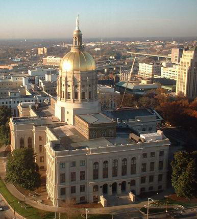 佐治亚州议会大厦(Georgia State Capital)建于1889年,顶高73米,上有右手持火炬、左手持圣经的女神像,和出身佐治亚的名人玛格丽特米切尔、马丁路德金等人的肖像并列。大厦金色的圆顶非常夺目。