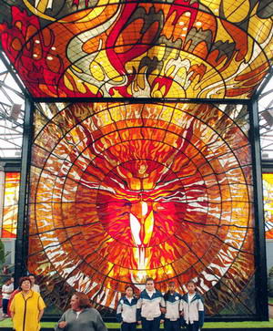 共动用了75吨钢架、45吨吹制玻璃、25吨铅骨,供镶嵌的彩色玻璃为50万块,镶嵌总面积达5000平方米,设计时间为1年,60名工匠花费3年完工。 |