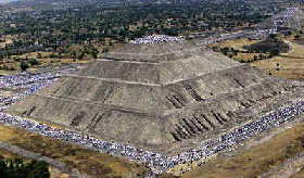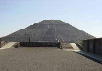 太阳金字塔是古印第安人祭祀太阳神的地方,它建筑宏伟,呈梯形,坐东朝西,正面有数百级台阶直达顶端。